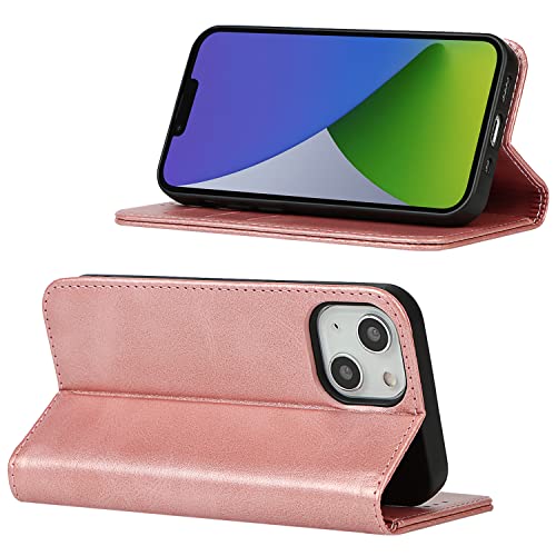 iPhone 14 Max ケース 手帳型 財布型 カード収納 内蔵マグネット マグネット式 アクオス 収納付き 画面保護 横置き機能 耐摩擦 耐衝撃 iPhone 14 max 強磁性 スマホカバー 6.7インチ-ローズゴールド 送料無料