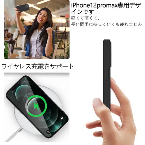 iPhone 12 promax ケース シリコン 耐衝撃 滑り止め スマホケース 指紋防止 カバー iPhone 12プロマックス ケース 衝撃吸収 カメラ保護 携帯ケース ソフト 薄型 ワイヤレス充電対応 12promax ケース 6.7インチ用 (ブラック)