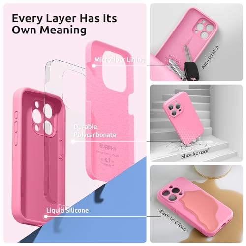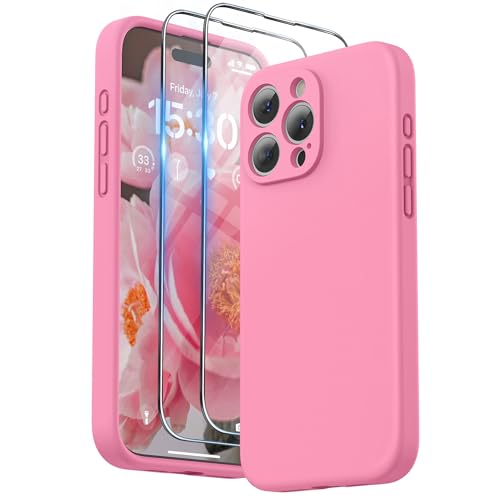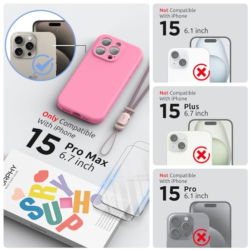 iPhone 15 Pro max ケース シリコン フィルム付き ストラップ付き 6.7インチ対応(2023) 保護ケース iPhone 15プロマックス(カメラの全面保護) 耐衝撃 超軽量 指紋防止 全面保護 iPhone 15 Pro max用ソフトカバー (ローズピンク)