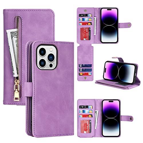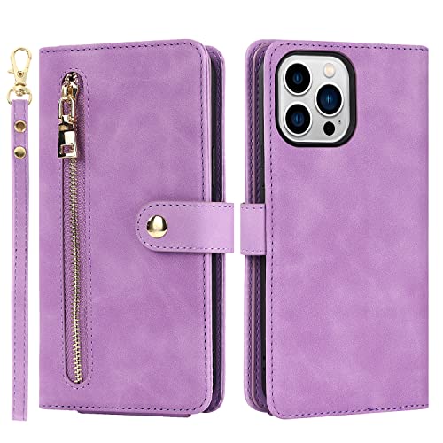 iPhone 14 Pro ケース 手帳型 アイフォン14 プロケース iPhone14 pro カバー 財布型 肩掛け 首かけ 斜めがけ ショルダー ストラップ 横置き機能 ICカード 小銭入れ ファスナーポケット付き 防塵 マグネット式 iPhone 14pro パープル