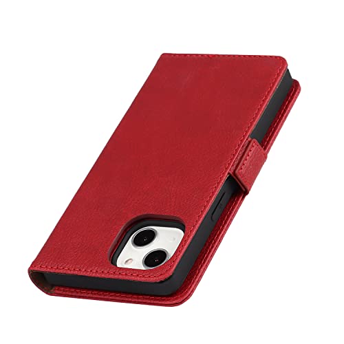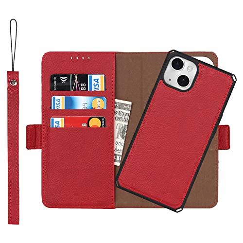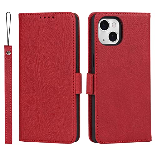 iPhone 14 ケース 手帳型 iPhone 14 背面ケース 分離式 両用 取り外し自由 内蔵マグネット iPhone14 スマホカバー 縄掛け PUレザー TPU 財布型カード収納 横開きスタンド機能 ストラップ付き スマホケース アイフォン14 耐衝撃 (2in1-レッド)