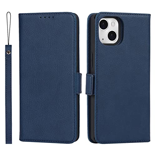 iPhone 14 ケース 手帳型 iPhone 14 背面ケース 分離式 両用 取り外し自由 内蔵マグネット iPhone14 スマホカバー 縄掛け PUレザー TPU 財布型カード収納 横開きスタンド機能 ストラップ付き スマホケース アイフォン14 耐衝撃 (2in1-ブルー)