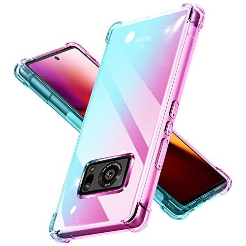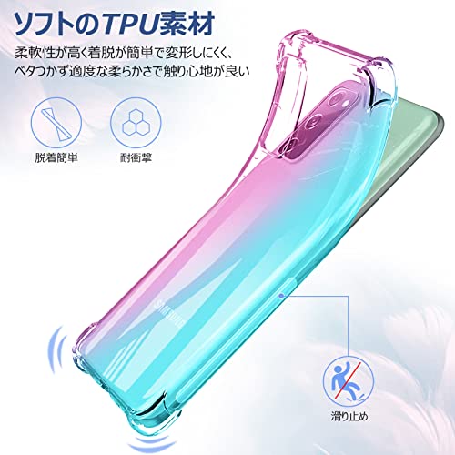 AQUOS R6 ケース クリア 全面保護カバー 耐衝撃 衝撃吸収 tpu 耐震 ソフト軽量 薄型 落下防止 透明 耐久 黄変防止 指紋防止 滑り防止 人気 スマホカバー ピンク+緑 グラデーション 送料無料