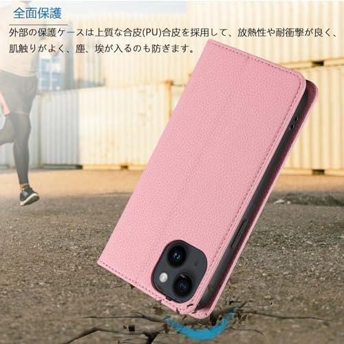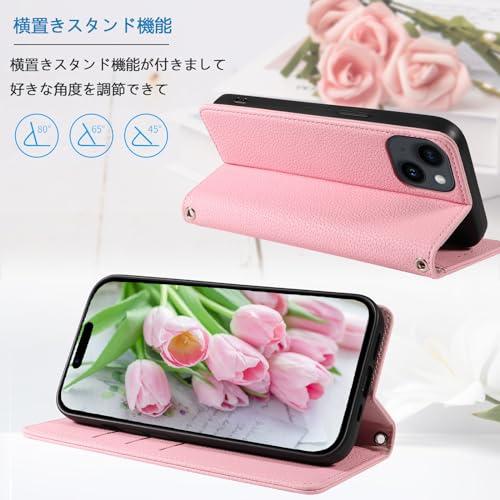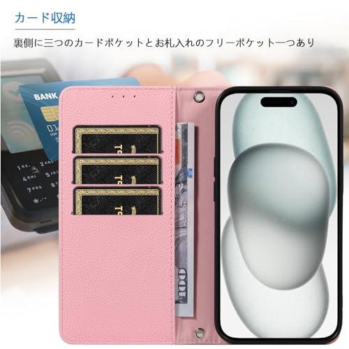 iPhone 15 ケース アイフォン15 スマホケース 手帳型 スマホカバー レザー 耐衝撃 軽量 着脱しやすい 放熱性 マグネット式 カード収納 スタンド機能ケース15 360度保護 (ピンク iPhone 15) 送料無料