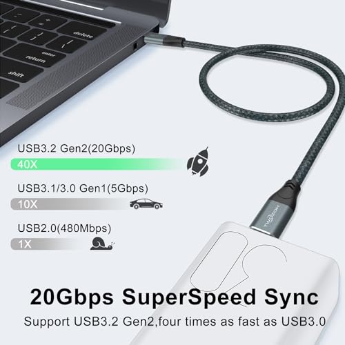 15フィートのUSB C - USB C 3.2世代ケーブルは、20Gbpsの超高速データ転送と最大100W PD/QC高速充電を同時に提供します。 オーディオ、4K@60Hzのビデオ信号をサポートし、ビデオ出力とUSB Cモニターを接続します。