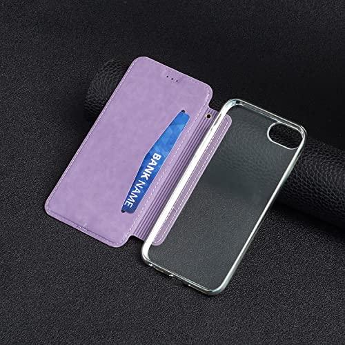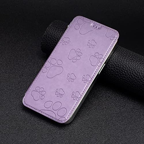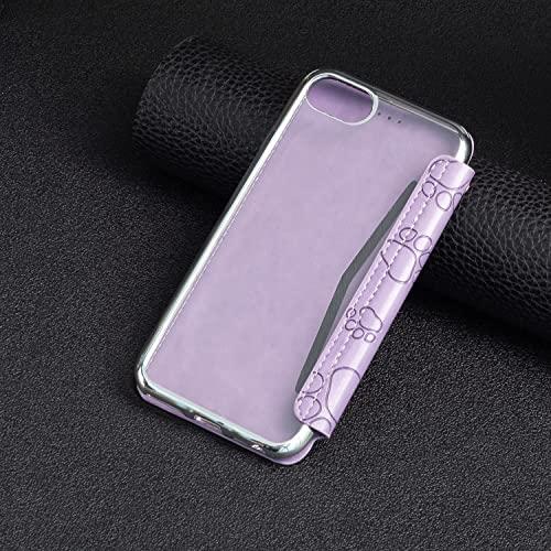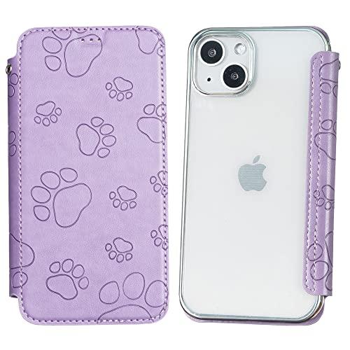 iPhone SE2 ケース 手帳型 透明 猫の足 型押し柄 スマホケース 軽量 薄型 財布型 カードポケット付き スマートフォンケース 耐衝撃 保護ケース 擦り傷防止 おしゃれ 全面保護 (iPhone SE2 iPhone7 / iPhone8 / iPhone6s / iPhone6 B5-パープル)