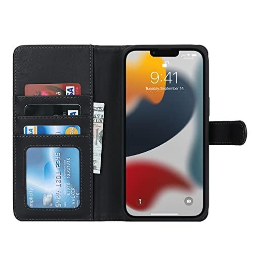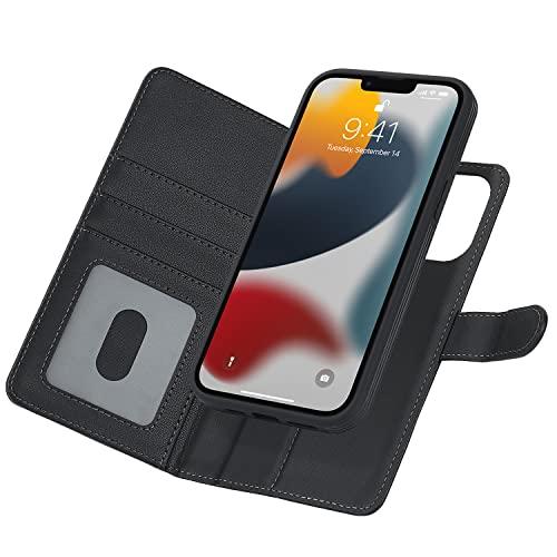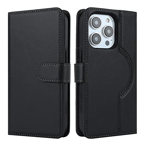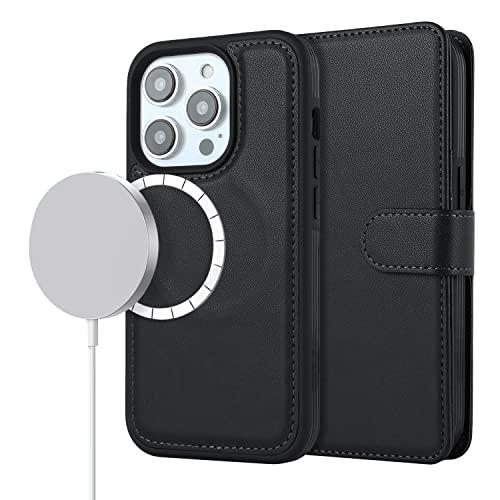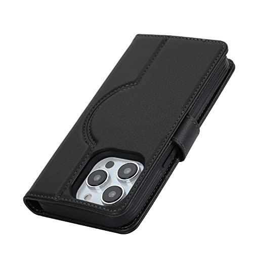 iPhone 13 Pro ケース 手帳型 Magsafe ワイヤレス充電 分離式 背面カバー スマホカバー PUレザー TPU 財布型カバー マグネット 取り外し自由 小銭入れ札入れ カード収納 スタンド機能 耐衝撃 滑り防止 全面保護 アイフォン13pro (ブラック)