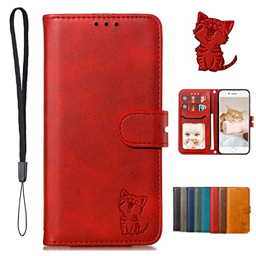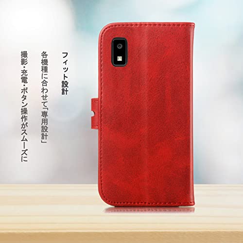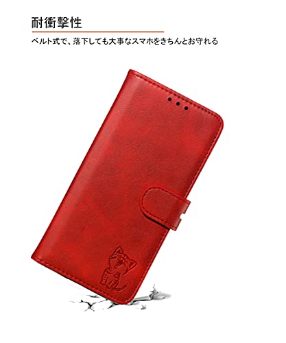 AQUOS wish3 ケース 手帳型 SH-53D A302SH 猫柄 動物 アニマル どうぶつ 柄 スマホカバー ストラップ付き カード収納 ベルト マグネット 男女兼用 (AQUOS wish3 SH-53D / A302SH対応) レッド