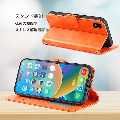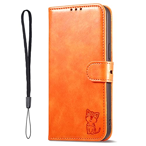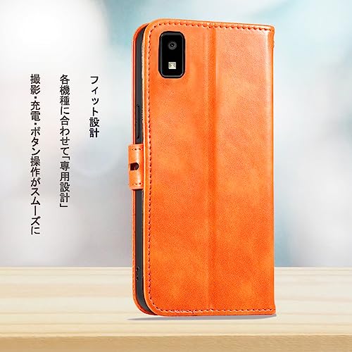 AQAQUOS wish3 ケース 手帳型 SH-53D A302SH 猫柄 動物 アニマル どうぶつ 柄 スマホカバー ストラップ付き カード収納 ベルト マグネット 男女兼用 (AQUOS wish3 SH-53D / A302SH対応) オレンジ