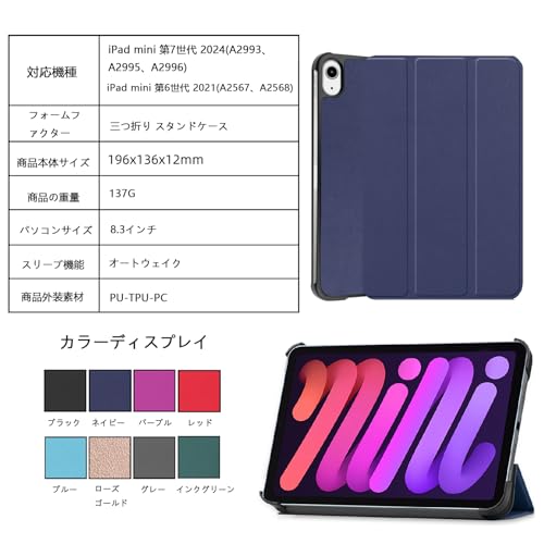 【対応機種】iPad mini 7(A17 Pro, 2024, 第7世代) ;iPad mini 6(2021, 第6世代)通用です。
