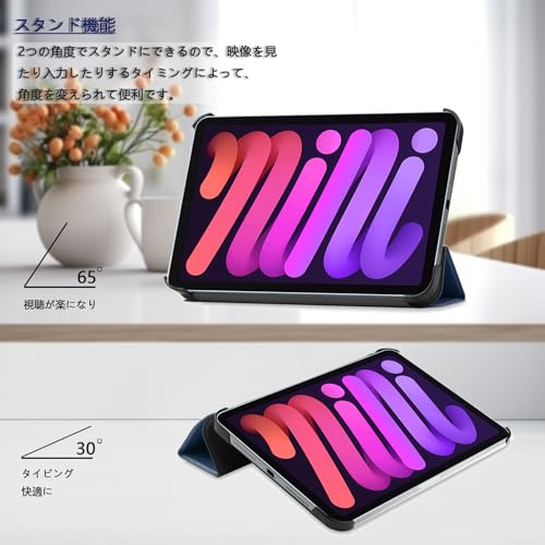iPad mini7 ケース (A17 Pro 2024) iPad mini 第7 / 6世代 ケース (8.3インチ 2024 / 2021) カバー 三つ折り スタンド オートスリープ機能 アイパッド用タブレットケースPU+PC 軽量 耐衝撃カバー (ネイビー ipad mini7 2024 / mini6 2021) 送料無料