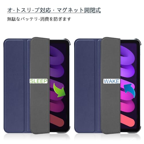 iPad mini7 ケース (A17 Pro 2024) iPad mini 第7 / 6世代 ケース (8.3インチ 2024 / 2021) カバー 三つ折り スタンド オートスリープ機能 アイパッド用タブレットケースPU+PC 軽量 耐衝撃カバー (ネイビー ipad mini7 2024 / mini6 2021)
