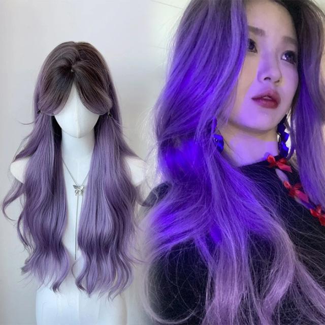 ロング ウィッグ パープル グラデーション ウェーブ カール 前髪あり 耐熱 高品質 フルウィッグ 自然 ゆる巻き レディース コスプレ ハロウィン 撮影 イベント 可愛い おしゃれ 韓国風 ヘアスタイル dq316x1x1j5