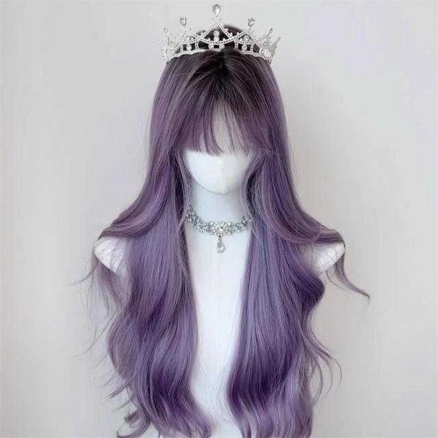 ロング ウィッグ パープル グラデーション ウェーブ カール 前髪あり 耐熱 高品質 フルウィッグ 自然 ゆる巻き レディース コスプレ ハロウィン 撮影 イベント 可愛い おしゃれ 韓国風 ヘアスタイル