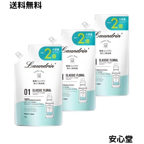 ランドリン 【3個セット】 無添加 洗濯洗剤 大容量 クラシックフローラル 詰め替え 2倍 720g ×3 濃縮タイプ 中性洗剤