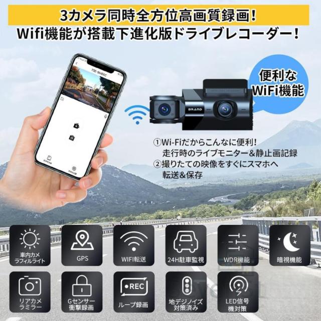 ドライブレコーダー 前後 wifi対応 360度 ミラー型 3カメラ 300万画素 駐車監視 ミラー型 運転対策 動体検知 HD 高画質 1080Pフル 前後2カメラ gps 暗視機能