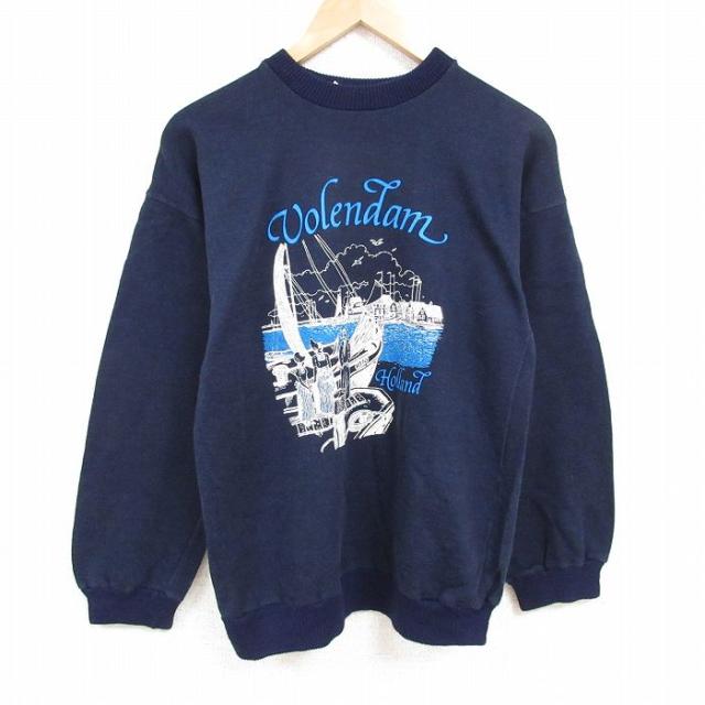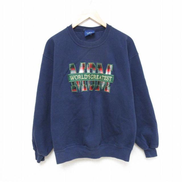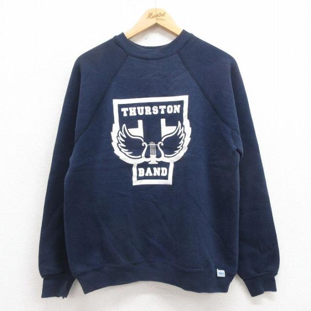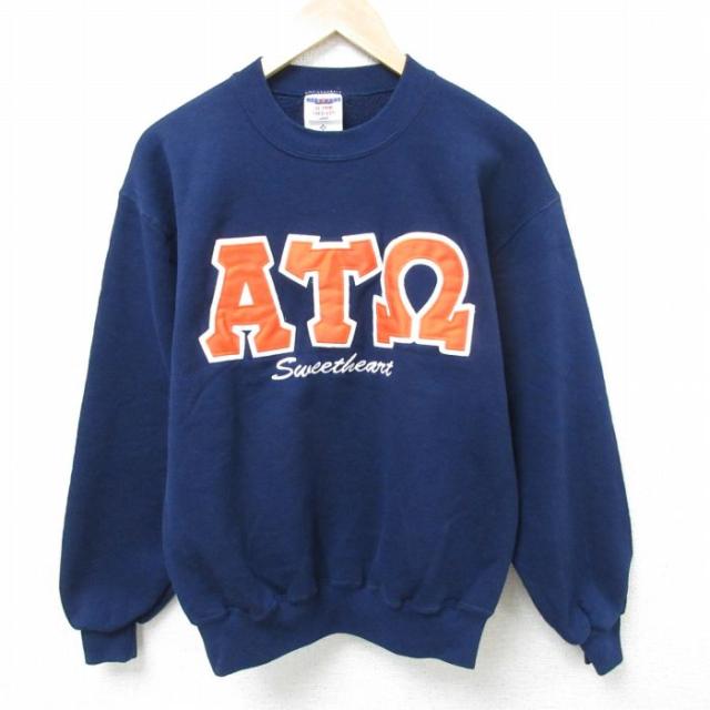 【商品名】 M★古着 ゲス GUESS 長袖 スウェット メンズ 90年代 90s ビッグロゴ クルーネック USA製 紺