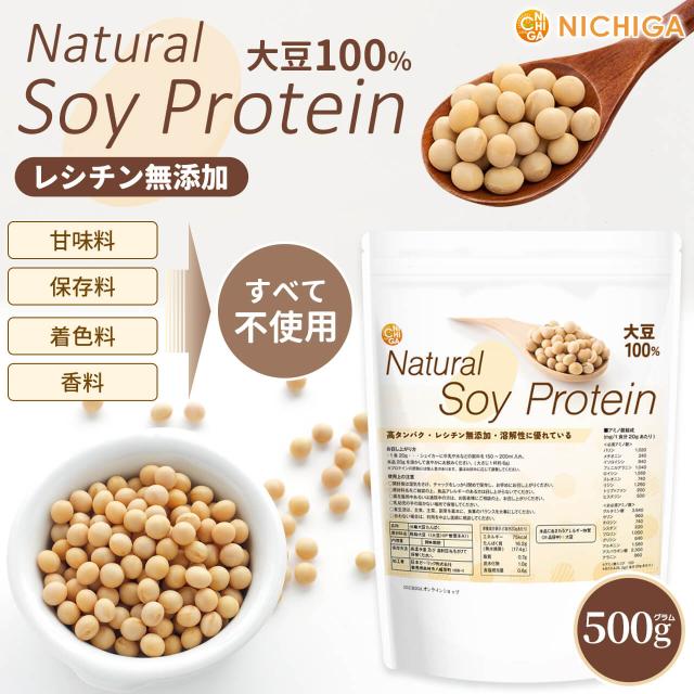 Natural Soy Protein 500g【メール便専用品】【送料無料】レシチン無添加 大豆100% 高タンパク ソイプロテイン 大豆プロテイン 植物性プロテイン 大豆 無添加 シンプルソイプロテイン [05] NICHIGA(ニチガ)