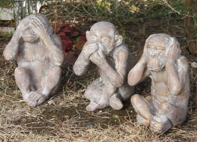 オブジェ デコール セメントオブジェ 見ザル聞カザル言ワザル 3匹組 ( 置物 サル 猿 セメント オブジェ オーナメント ガーデンオーナメント 庭 インテリア 雑貨 屋外 ガーデン雑貨 中型 アニマル )