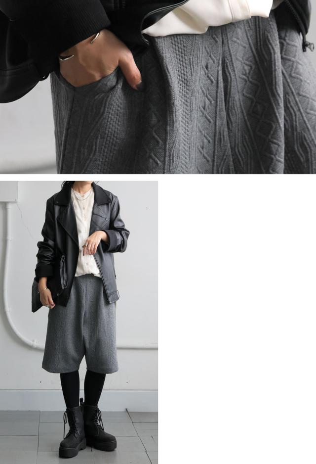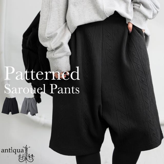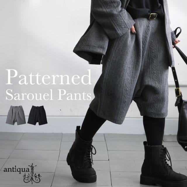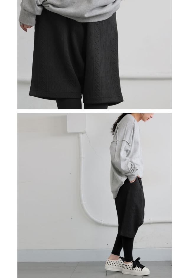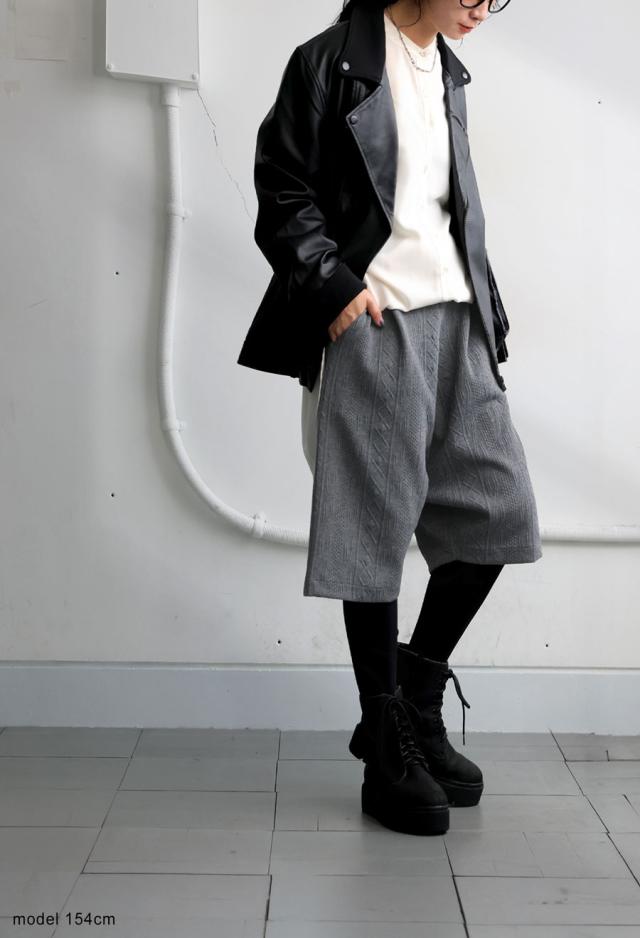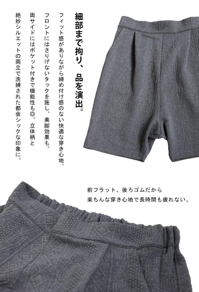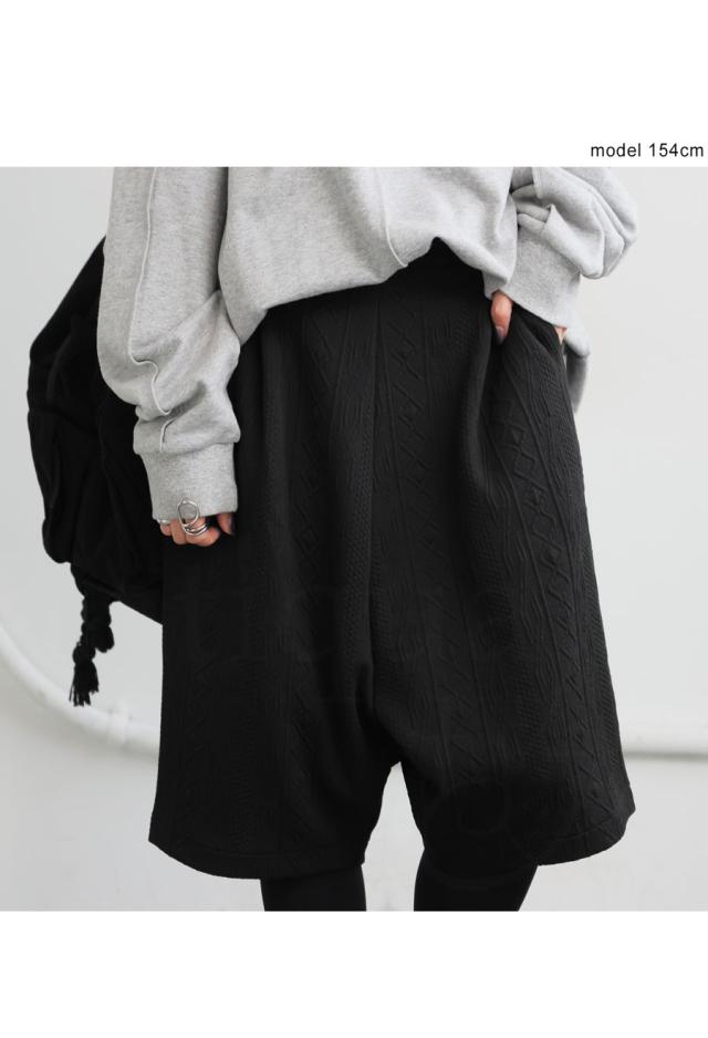 pa-03866 ボトムス ハーフパンツ ショートパンツ パンツ サルエルパンツ ハーフ丈 バレルシルエット 立体柄 アランニット 柄 体型カバー ゆったり 楽ちん 大人 カジュアル おしゃれ