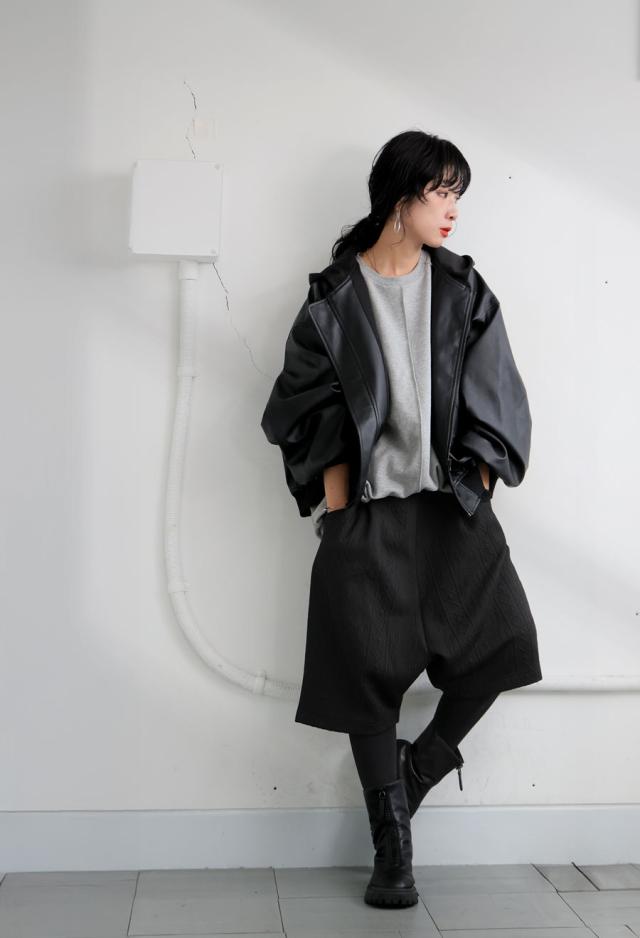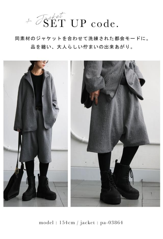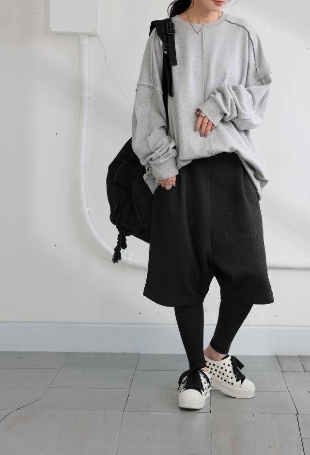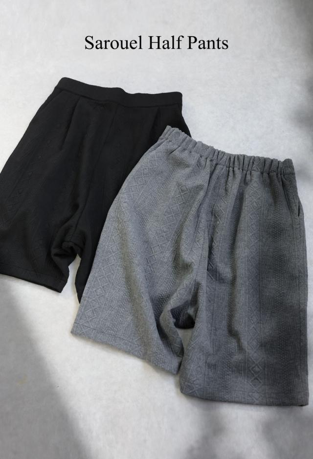 立体感のあるジャガード素材が魅力のサルエルハーフパンツです。