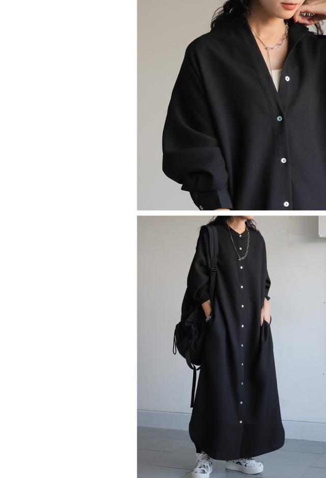 pk-01359 ロングワンピース 羽織り 長袖 ロング ワッフル シェルボタン ゆったり ナチュラル 前開き カジュアル 無地 体型カバー オーバーサイズ きれいめ シンプル ポケット付き