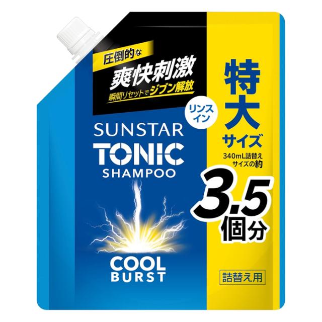サンスター トニックシャンプー COOL BURST リンスイン 詰替 1200ml(特大サイズ 爽快 頭皮ケア ノンシリコン処方)