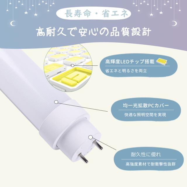 ★約50,000時間の長寿命。蛍光灯の約4〜8倍も長持ちするため、交換の手間を大幅に削減できます。さらに低消費電力設計により電力消費を抑え、電気代の節約にも貢献します。