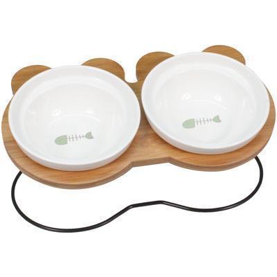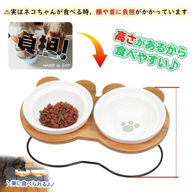 えさ皿 猫 犬 食器 えさ 皿 餌入れ フードボウル ペット 猫用 犬用 ご飯皿 お皿 水飲み 食器台 食べやすい 傾斜 陶器 アイアンバンブースタンドダブル