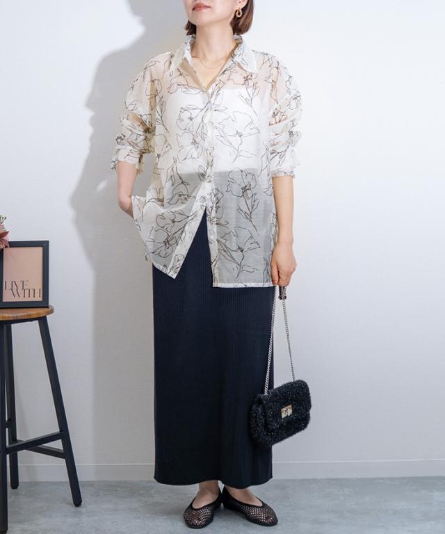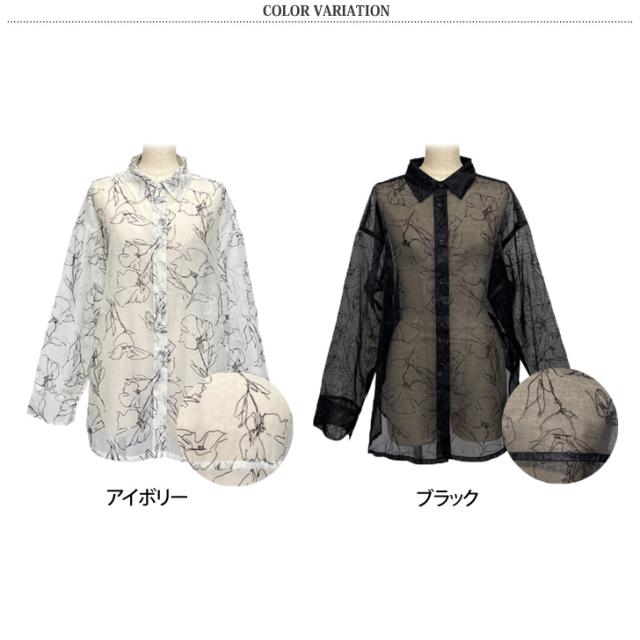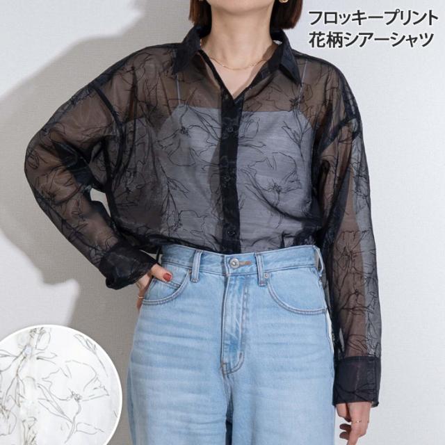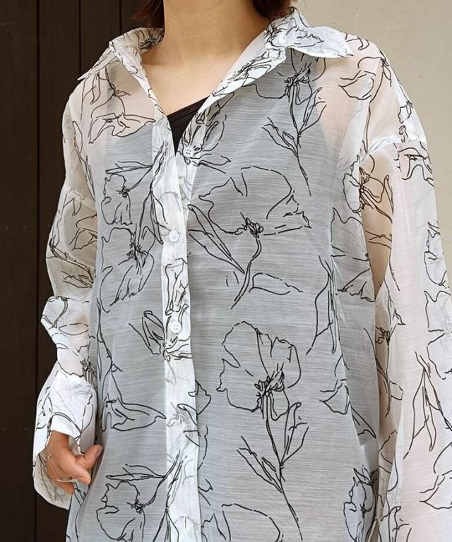 透け感を楽しむ、大人上品な花柄シアーシャツ