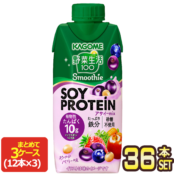 [送料無料] カゴメ 野菜生活100 Smoothie SOY PROTEIN スムージー ソイプロテインアサイーミックス 330ml紙パック×36本[12本×3箱]【3〜4営業日以内に出荷】 野菜ジュース たんぱく質