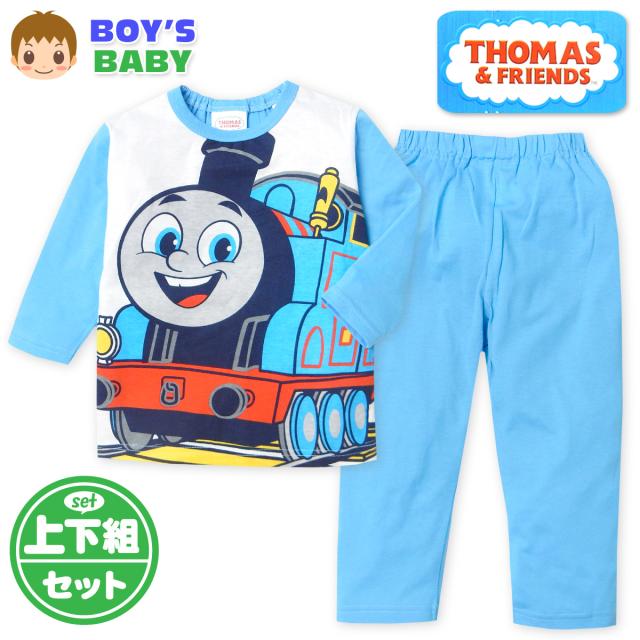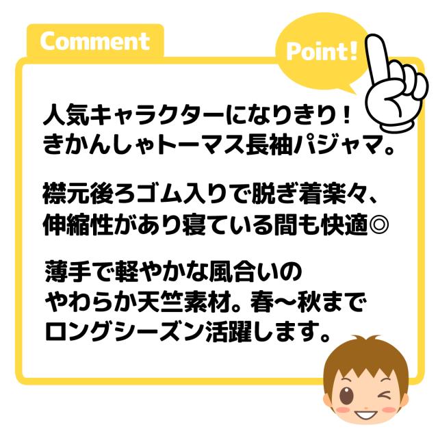 【送料無料】男児 ベビー なりきり 長袖 パジャマ きかんしゃトーマス 上下組 天竺 ベビー服 男の子 80cm 90cm 95cm iw-1372【メール便対応】