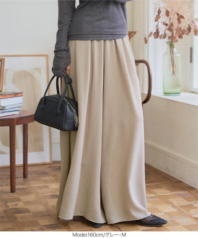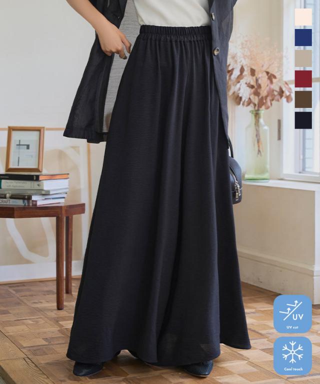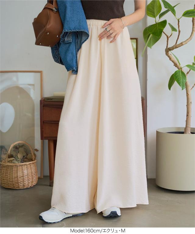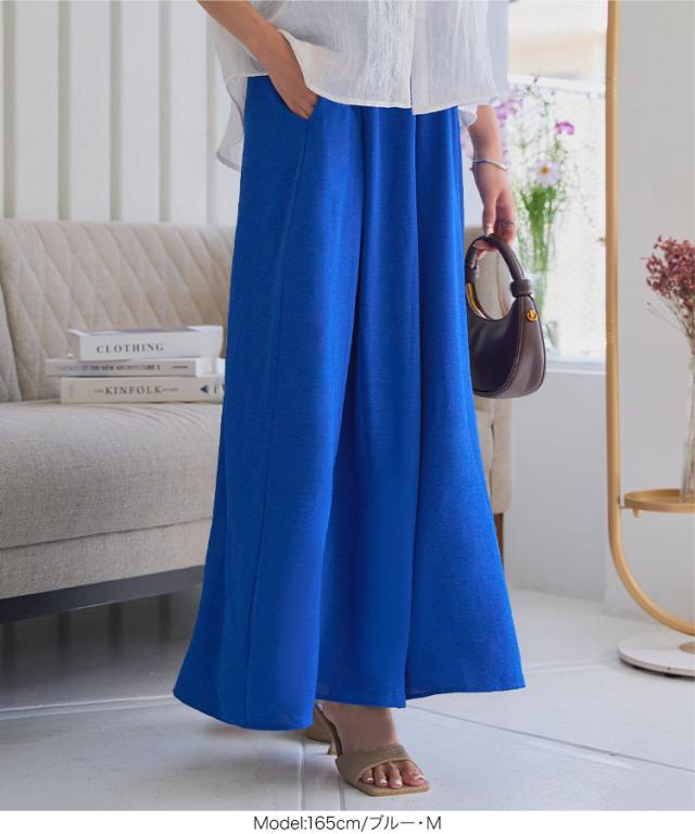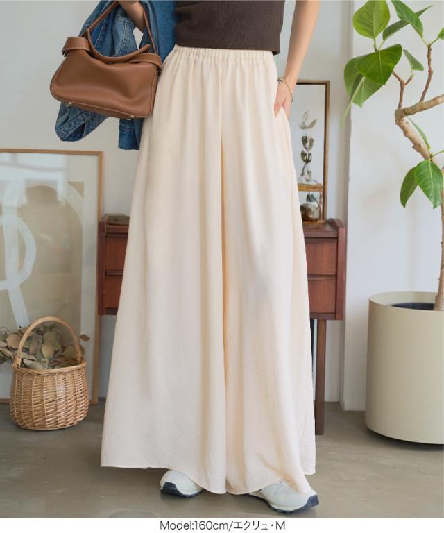 UVカットサラテロワイドパンツ M4286 入荷済 レディース 20代 30代 40代 ワイドパンツ ストレートパンツ UVカット 紫外線カット ガウチョ スカパン スカーチョ サラテロ フリー 低身長 ゴム 美脚 スタイルアップ ウエストゴム イージ