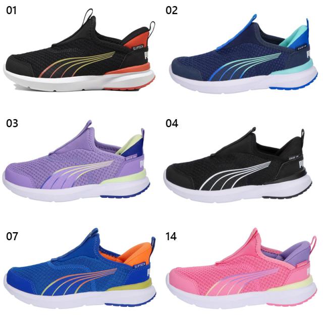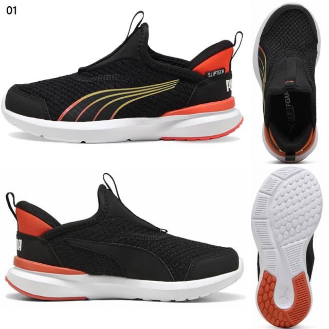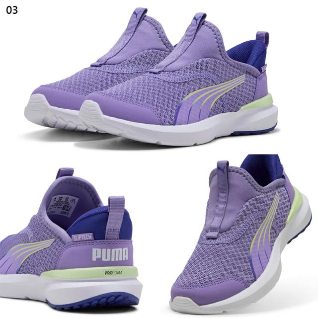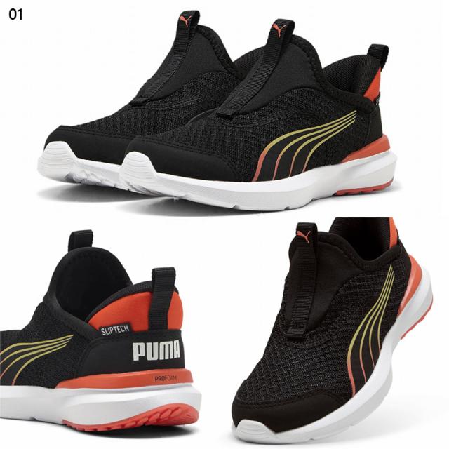 4歳から8歳のお子様におすすめのサイズ。プーマの新しいSLIPTECHテクノロジーにより、手を使わずにシューズを脱ぎ履きでき、ユニークなステップインスタイルを演出します。アッパーはスリップオン仕様で、耐久性と足運びをサポートするトラクションが特徴。ミッドソールには、ProFoamと耐久性のあるラバーポッドがどんな路面でもトラクションを発揮します。伸縮性のあるネオプレンとウェビングが元気に動き回るお子様の足にぴったりフィットします。