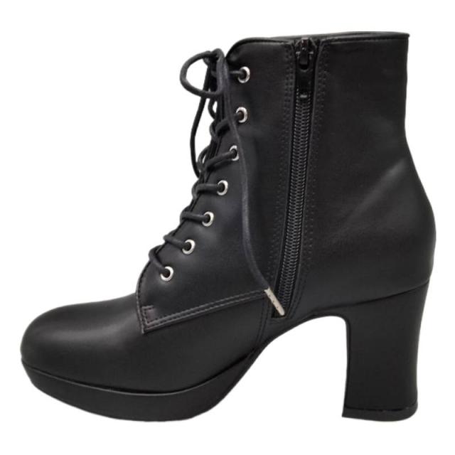 byあしながおじさん レディース 厚底レースアップブーツ ブーツ 靴 シューズ ショート おしゃれ シンプル カジュアル クラシカル 卒業式 歩きやすい ブラック 黒 送料無料 8700153