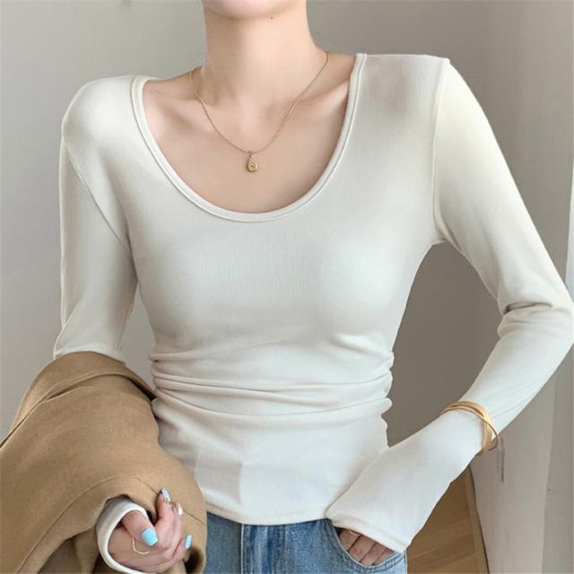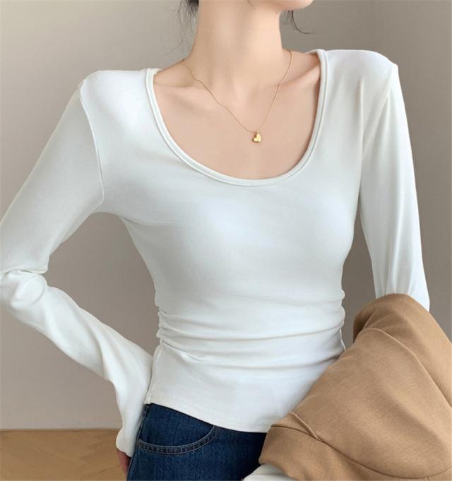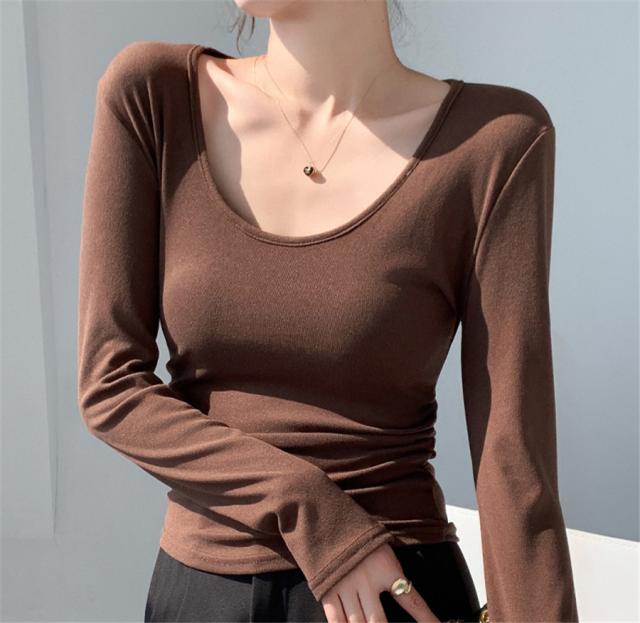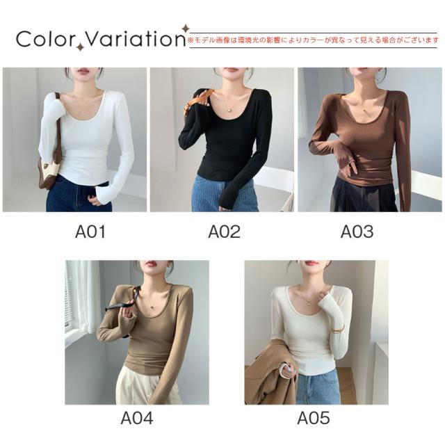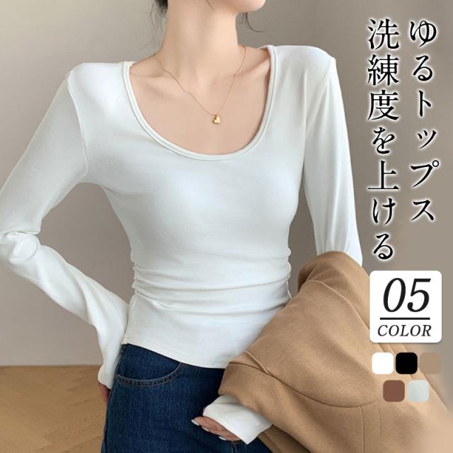 カットソー Tシャツ 長袖 Uネック トップス レディース ロンT 無地 ゆったり カジュアル 重ね着 お出かけ 大きいサイズ お