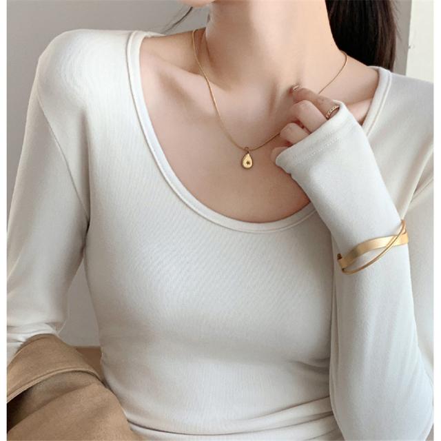 ニットやプルオーバーにレイヤードするインナーとしても使えるので、