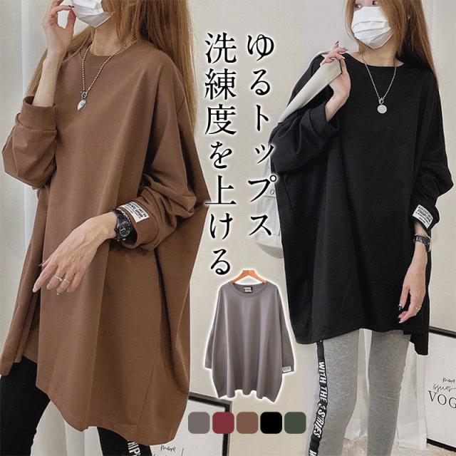 カットソー Tシャツ 長袖 トップス レディース ロンT 無地 ゆったり カジュアル 重ね着 お出かけ 大きいサイズ おしゃれ 着