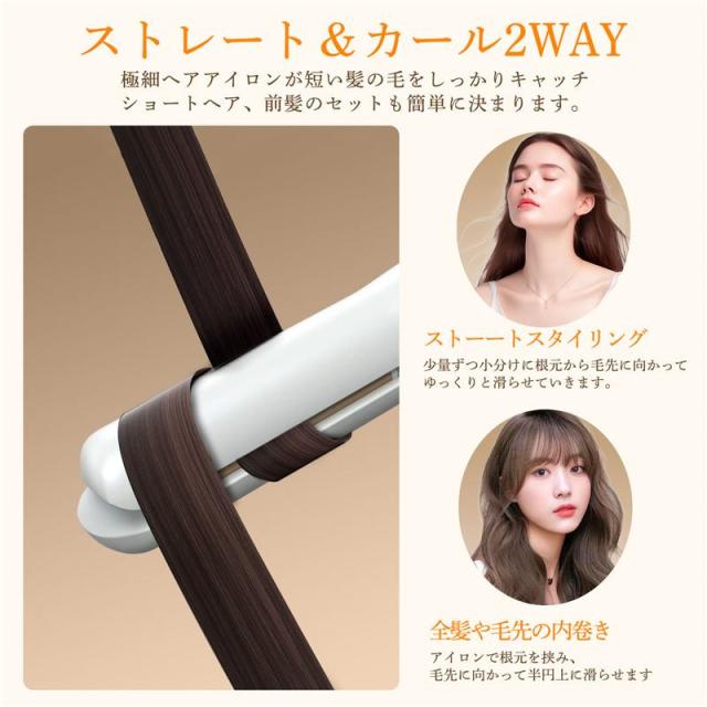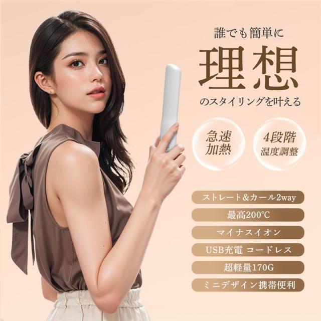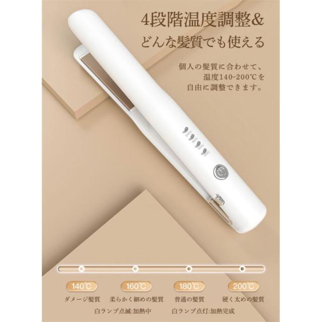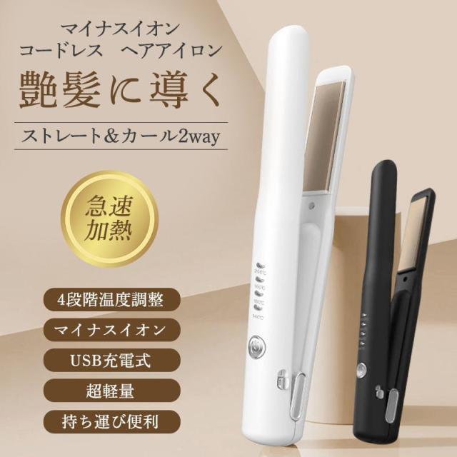 ヘアアイロン ストレート カール 2way ストレートアイロン 急速加熱 4段階温度調整 コードレス マイナスイオン ミニ 充電式 携帯用 前髪 軽量