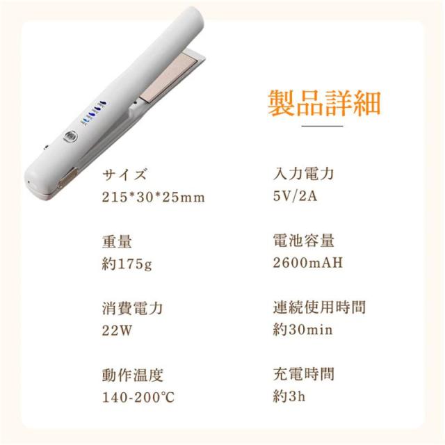 ヘアアイロン コードレス USB充電式 ストレート カール 一台多役 ミニアイロン ワイヤレス 前髪 軽量 男女兼用 コードレスアイロン 自動電源OFF 誤起動防止ロック 大容量バッテリー 初心者向け 家庭 旅行 出張 通勤 贈り物 外出 デート 学校 職場