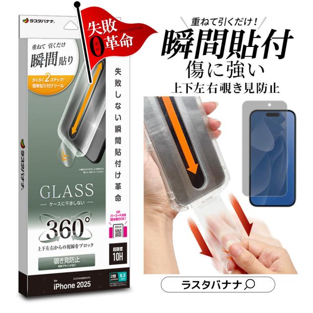 iPhone17 iPhone17 Pro ガラスフィルム 平面保護 のぞき見防止 覗き見防止 上下左右 360° 貼付革命 瞬間貼り 失敗しない瞬間簡単貼り付け レボリューション 0.33mm 硬度10H アイフォン 保護フィルム ラスタバナナ