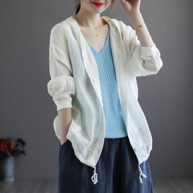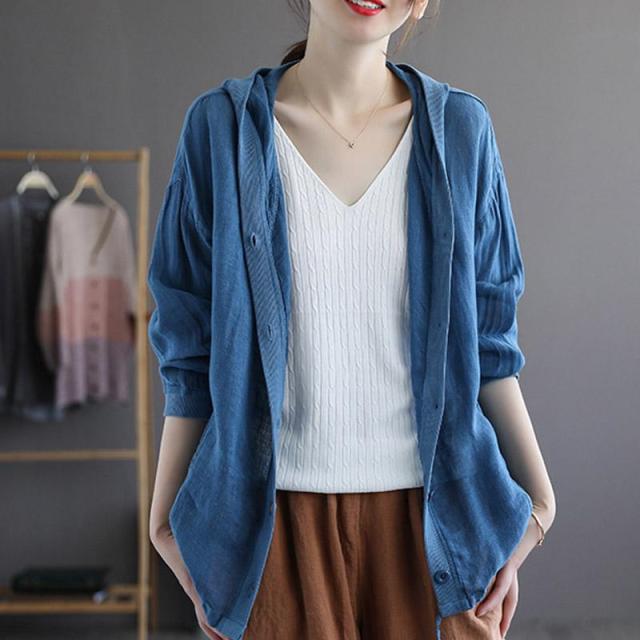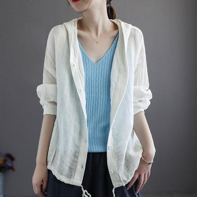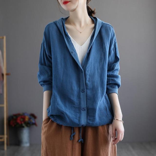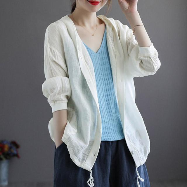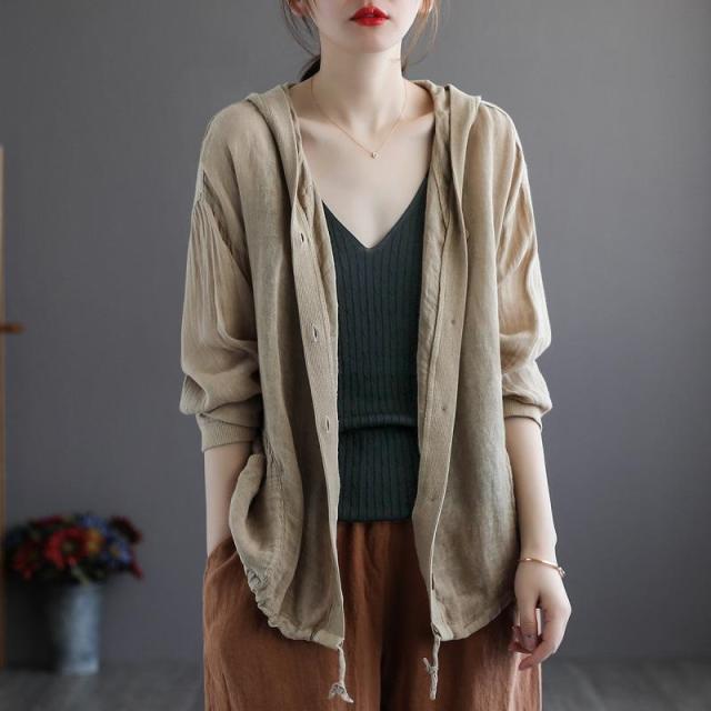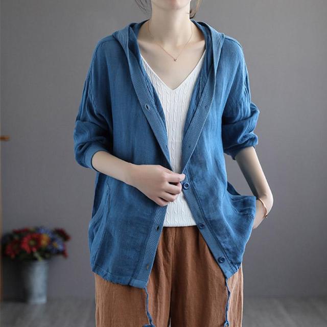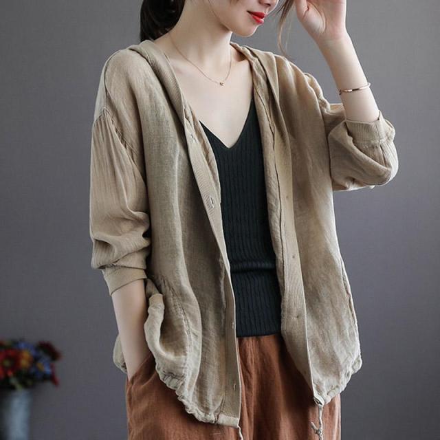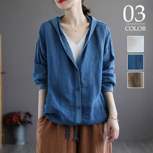 パーカー レディース 春 夏 秋 リネン フード付き 長袖 カーディガン 綿麻 トップス 着心地 ゆったり 体型カバー 涼しい シップパーカー 大きいサイズ アウター