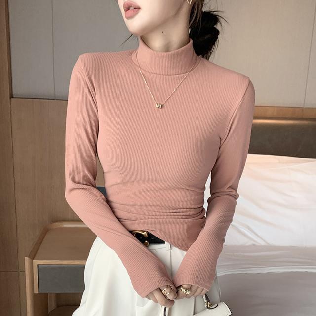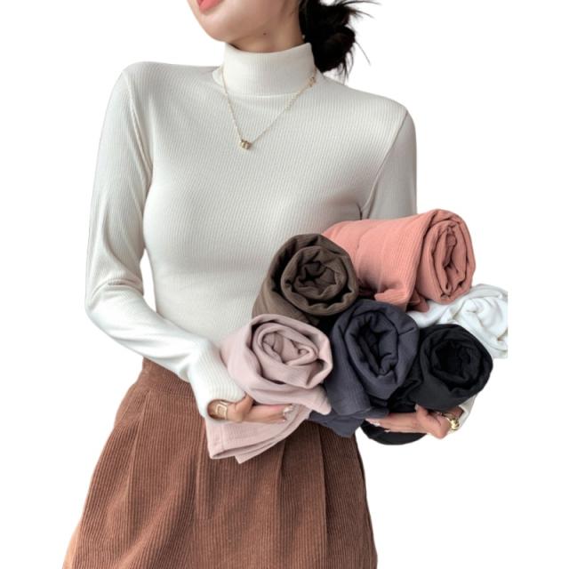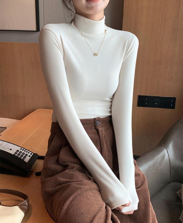 タートルネック リブニット 長袖Tシャツ レディース ハイネック カットソー 無地 トップス インナー スリムフィット 伸縮性 体型カバー ベーシック シンプル カジュアル 大人可愛い 韓国風 着回し 秋 冬 春 白 黒 グレー ブラウン ピンク