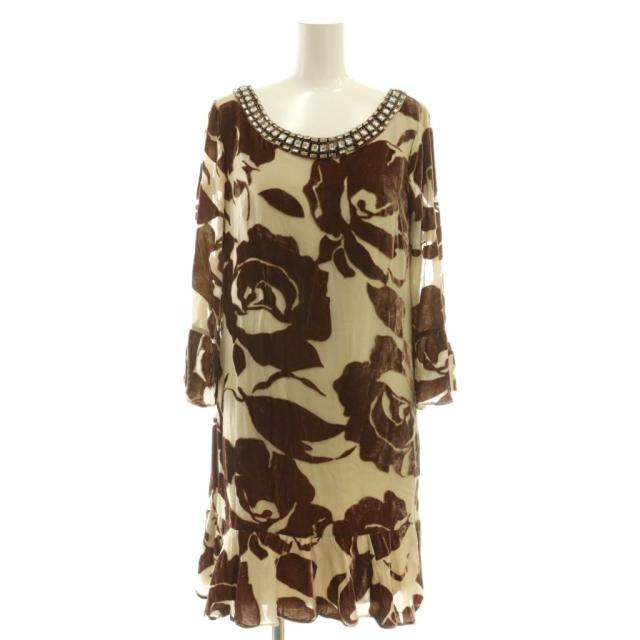 【中古】ダイアグラム グレースコンチネンタル ベロア ビジュー ワンピース 膝丈 36 ベージュ ブラウン