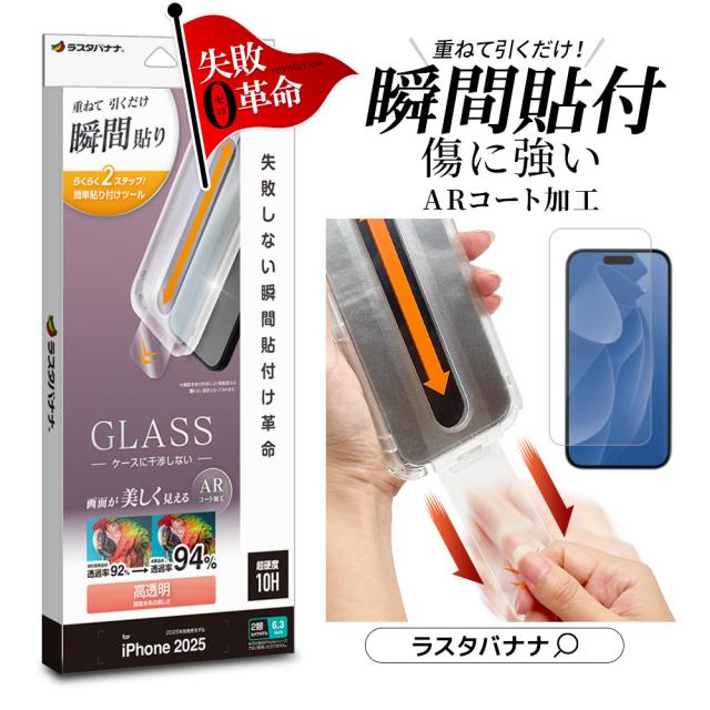 iPhone17 iPhone17 Pro ガラスフィルム 平面保護 高光沢 高透明 ARコーティング クリア 貼付革命 貼り付け革命 瞬間張り 失敗しない瞬間簡単貼り付け レボリューション 0.33mm 硬度10H アイフォン 保護フィルム ラスタバナナ