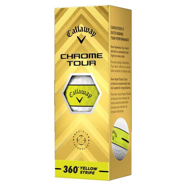 【2025モデル】キャロウェイ クロムツアー 360° イエローストライプ ボール 1ダース(12球入り) 日本正規品 CHROME TOUR 360° YELLOW STRIPE Callaway