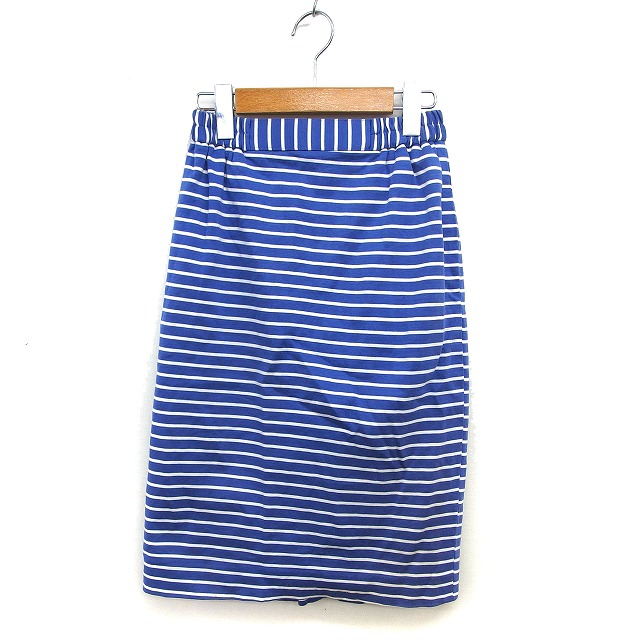 【中古】クイーンケリー QUEEN KERRY ボーダー ナロー スカート ロング スリット コットン 綿 バックジップ 63-90 青
