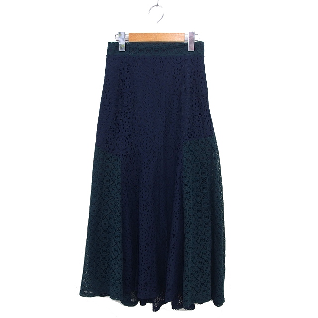 【中古】ジェナ エスパスメルヴェイユ Jena espace merveilleux レース スカート マキシ 透け感 コットン混 F 紺
