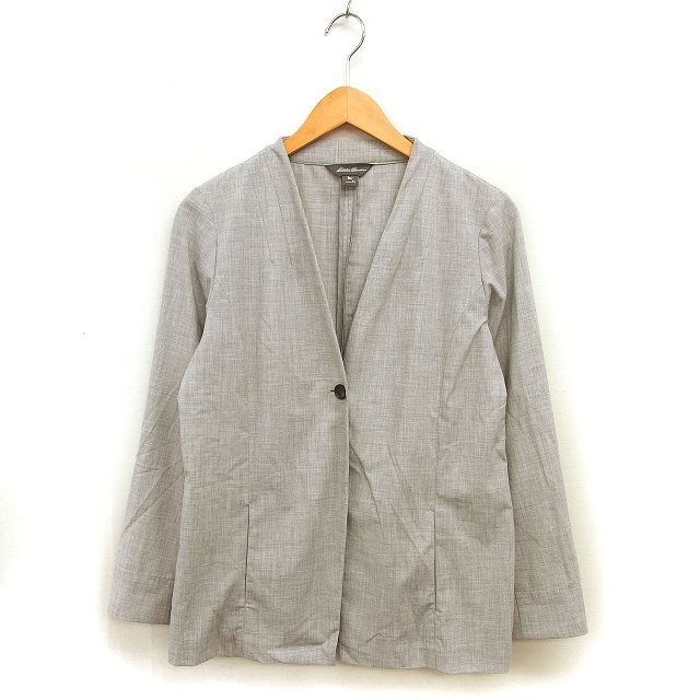 【中古】エディーバウアー EDDIE BAUER ノーカラー ジャケット 裏地なし スリット 透け感 PL グレー /NT21 レディース