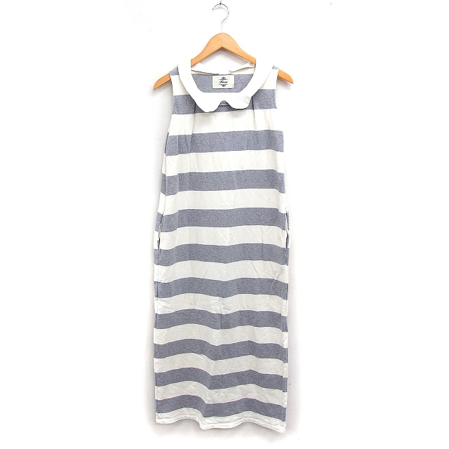 【中古】カオン Kaon ボーダー ワンピース ロング丈 ノースリーブ レースカラー スウェット M グレー 灰 オフホワイト